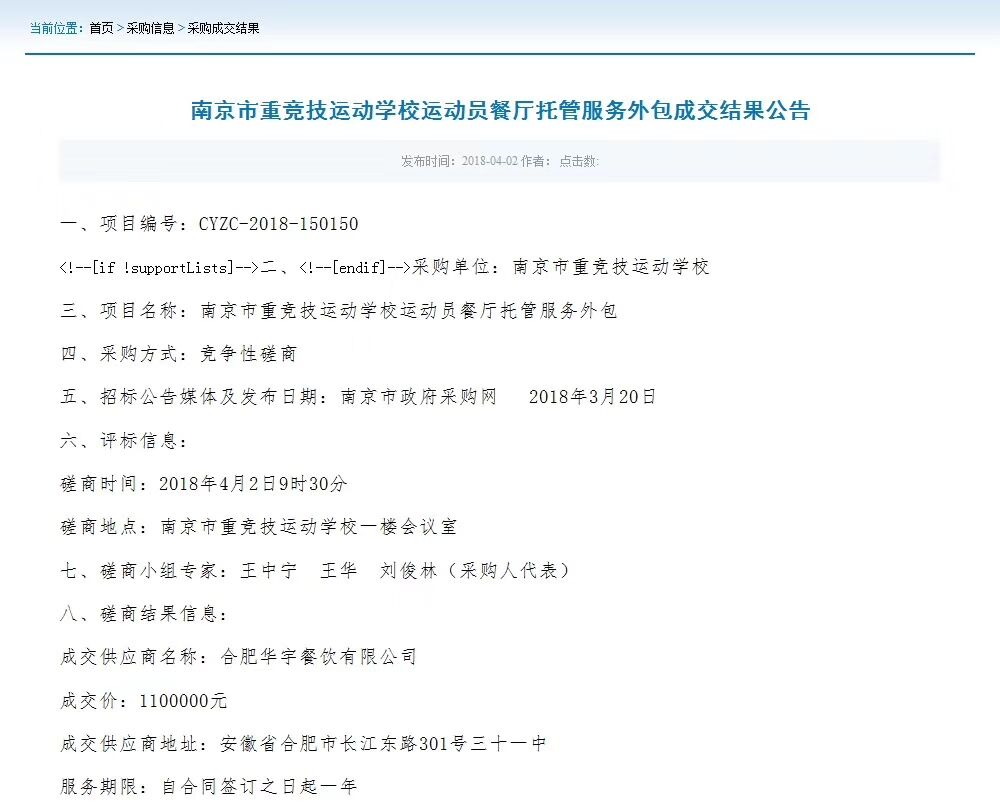 華宇餐飲有限公司中標(biāo)南京重競技運(yùn)動學(xué)校
