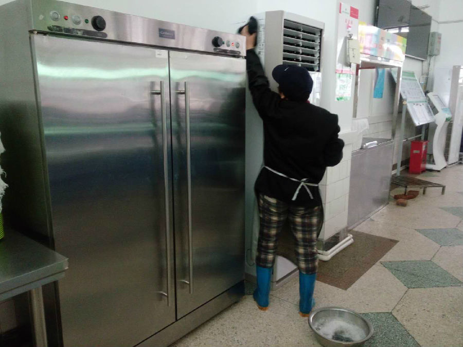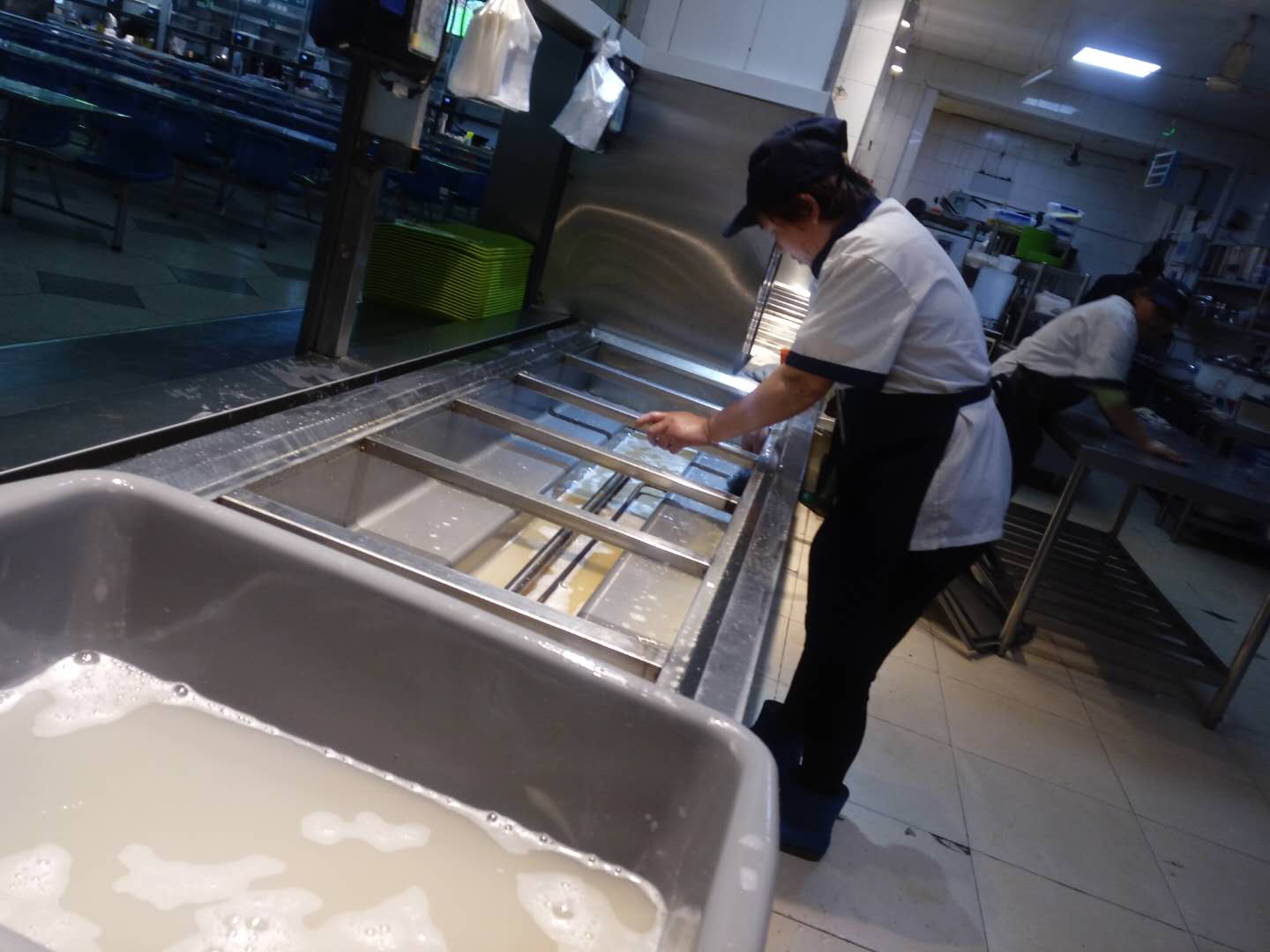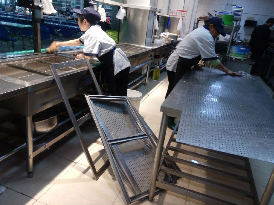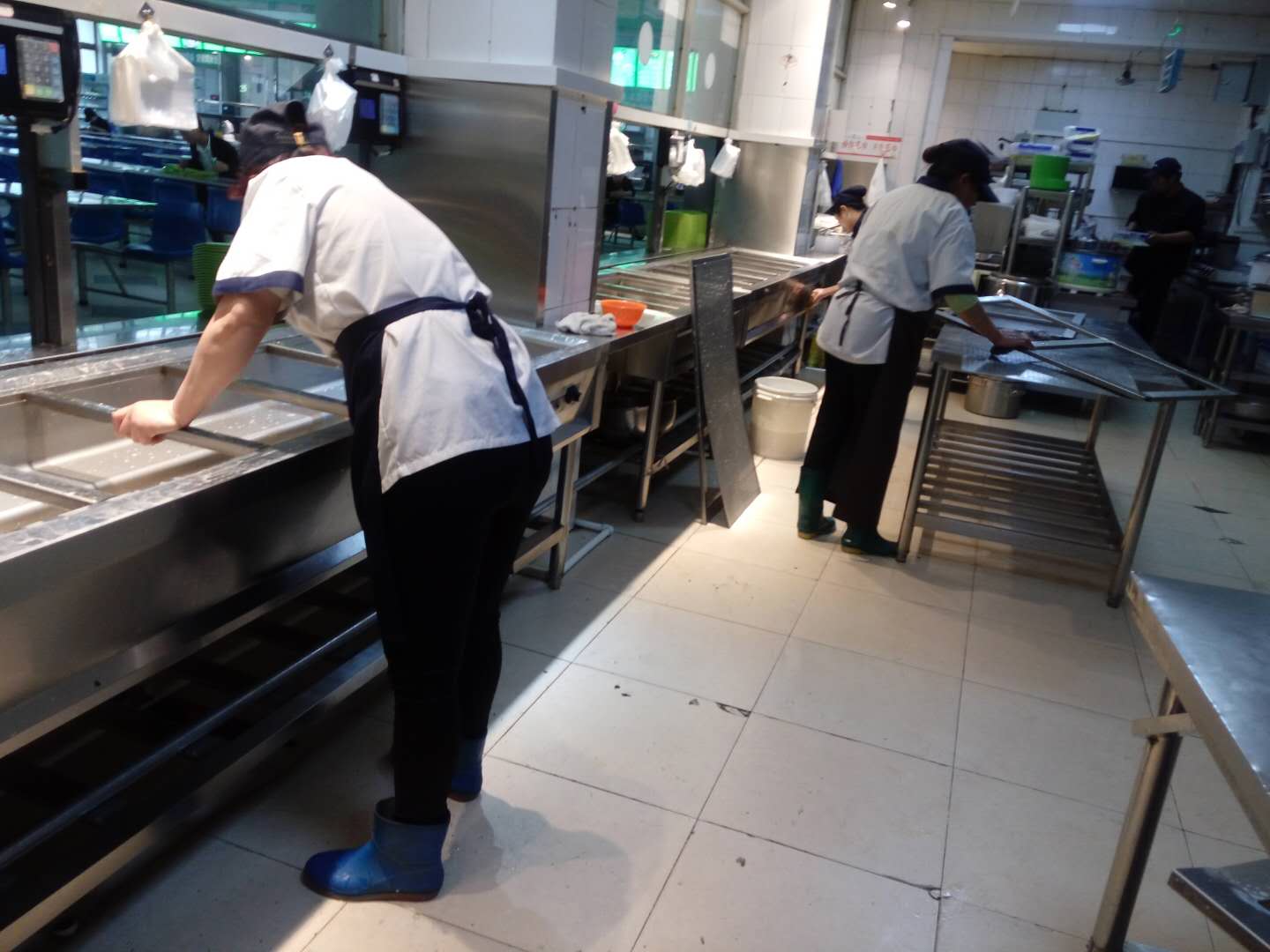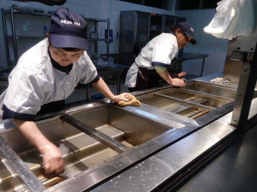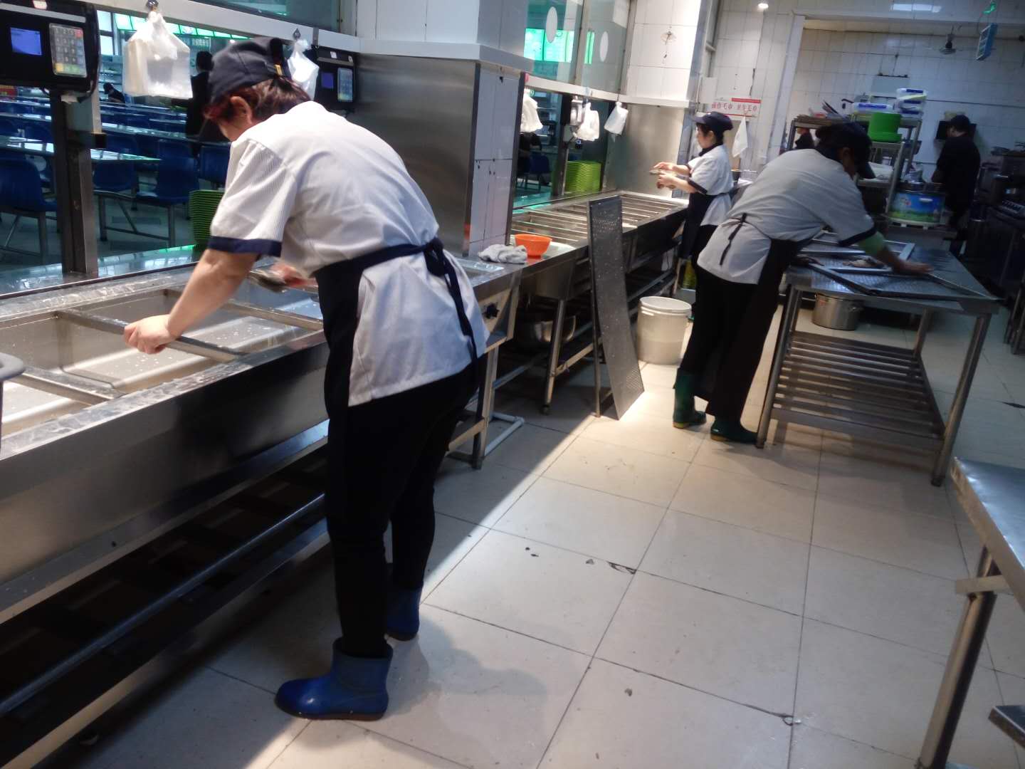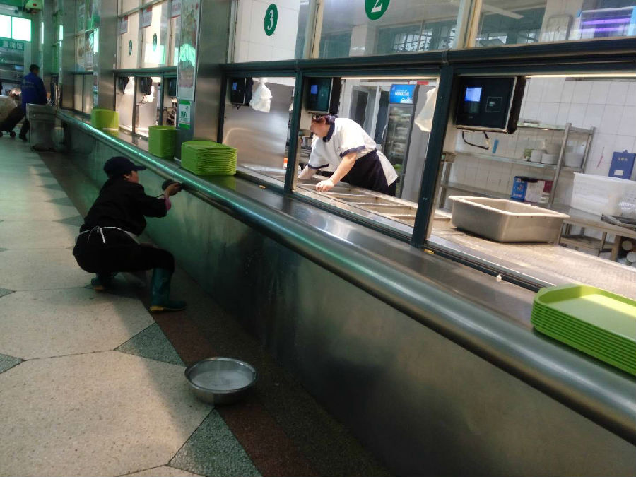 食堂大姐們辛苦半天,中午繼續(xù)打掃衛(wèi)生,保證食堂整潔干凈